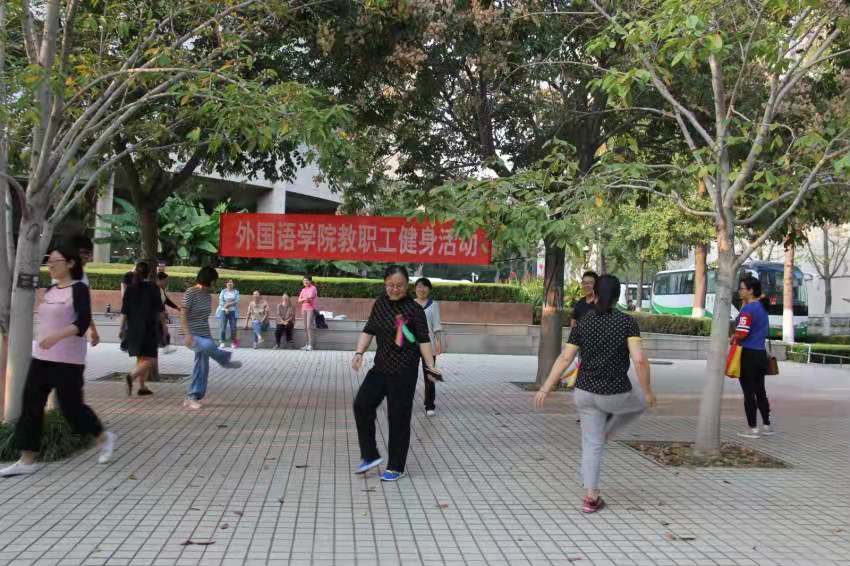 9月30日,威尼斯人网站 于文理大楼前开展教职工庆祝新中国成立70周年健身活动,全体教职工参加活动,学校工会主要负责人莅临现场指导。
