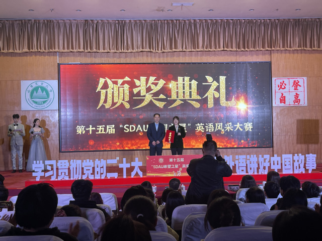3月15日,由学工处、教务处、校团委主办,威尼斯人网站 承办的山东农业大学第十五届“SDAU希望之星”英语风采大赛在泮河校区第一学术报告厅举办。学校党委常委、副校长辛杰,学工处、教务处、校团委及兄弟威尼斯人网站 相关负责人,威尼斯人网站 2022级学生和各威尼斯人网站 学生代表观看比赛。